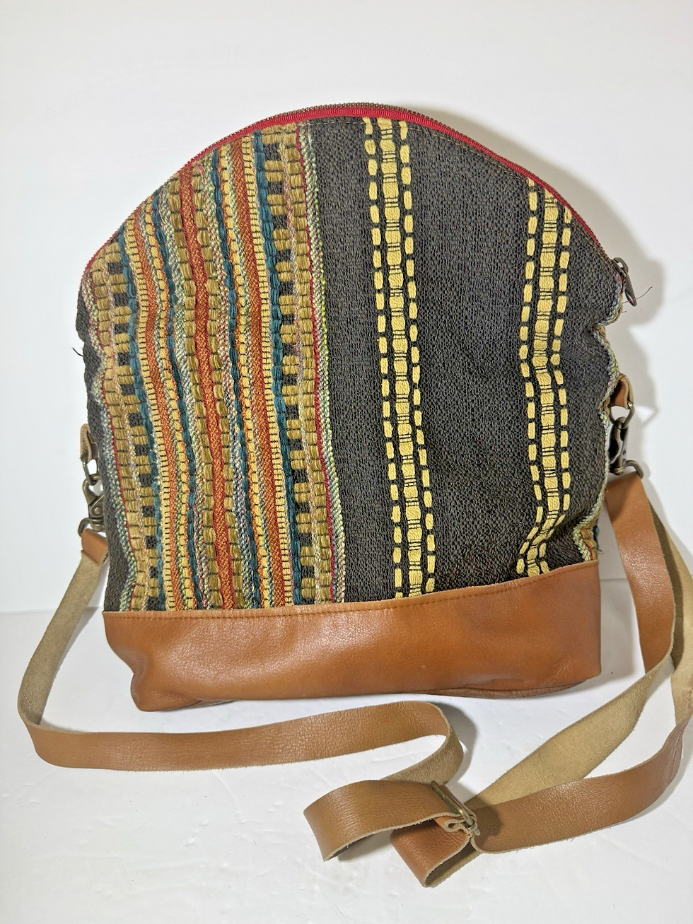 Vaalbara Design Handmade California Boho Crossbody Bag Leather Woven and Textile